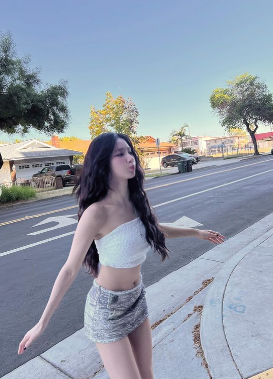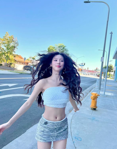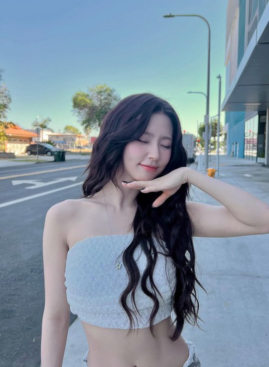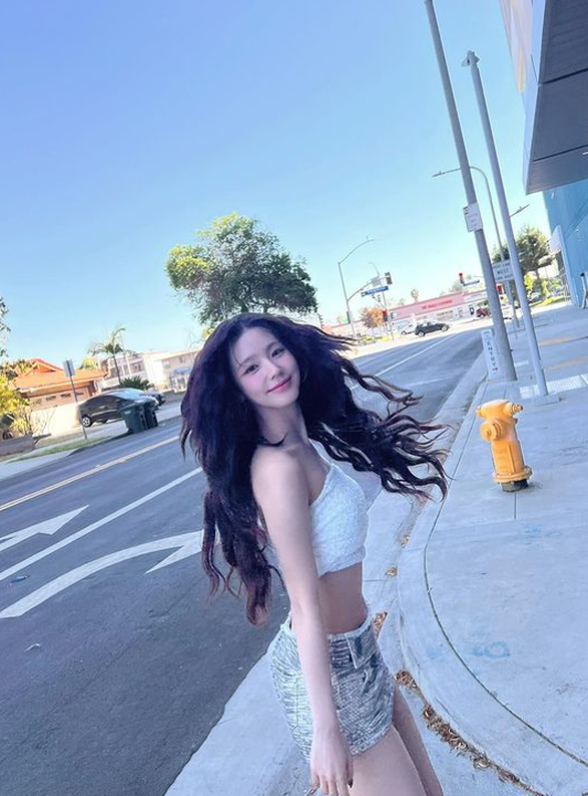 또한 사진도 여러 장 게재했다. 사진 속 미연은 회색 미니스커트에 흰색 크롭탑 패션으로 거리를 활보했다. 특히 흰 피부와 탄탄한 복근, 늘씬한 각선미 라인이 돋보인다.