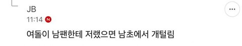 너도 입술 내밀지 말고 슴이랑 잘 해결하지 그랬냐는 댓 ㅈㄴ 웃겼는데ㅋㅋ 너나 부쳐 ㅠ ㅋㅋ 본인이나 집안에서 전 부치고 하는 말인지 지 팬들 대부분 여자인거 알면서 전부치라느니 뭐니 전부쳐 본적도 없을 한남이 말하는게 ㅈㄴ 싫음