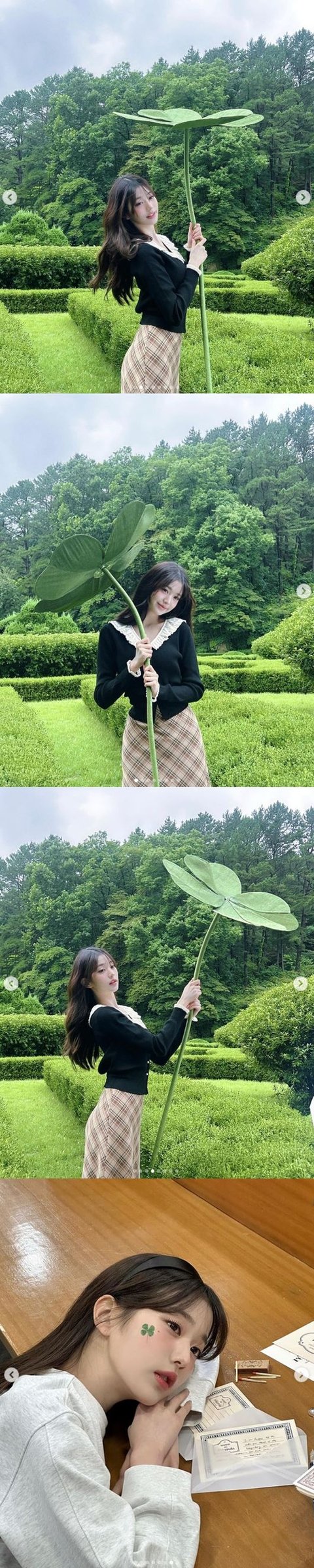 사진 속 그는 행운의 상징인 네잎 클로버의 거대한 형태를 들고 미모를 뽐내 눈길을 끌었다. 이는 앞서 그가 말하면서 유행어가 된 '럭키 비키'를 떠올리게 한다.