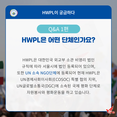 (사)하늘문화세계평화광복(이하 HWPL) 이란 평화 단체랍니다