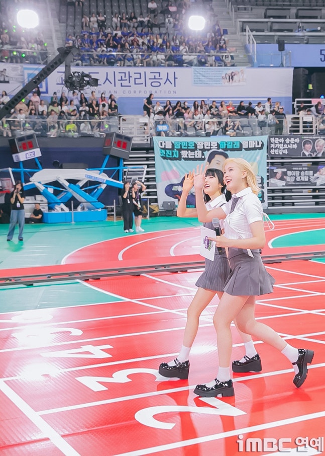 스테이씨(STAYC) 시은, 재이가 최근 경기도 고양시 고양실내체육관에서 열린 MBC '2024 추석특집 아이돌스타 선수권대회'(아육대) 녹화 방송 촬영 현장에 참석해 장내를 활보 하고 있다.