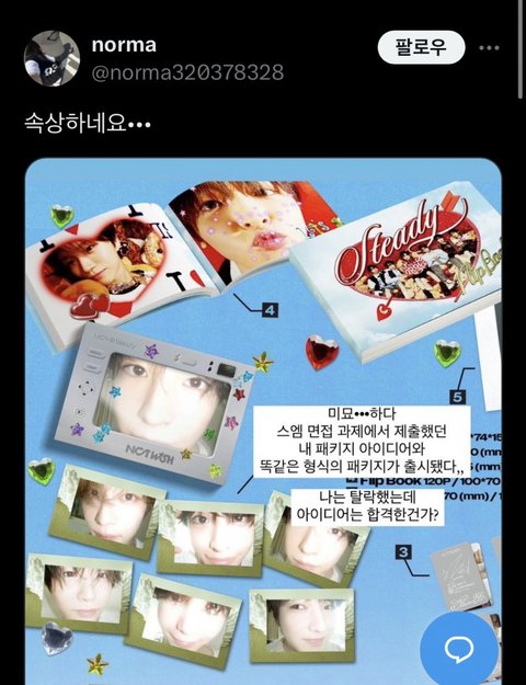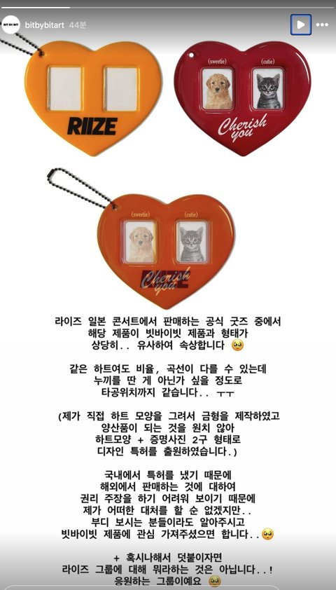스엠 저번에도 라이즈 하트 굿즈 한국사람 제품 베껴다 팔았음 원작자분이 인스타에 자기가 특허낸 거라고 올렸는데 대기업 상대로 뭐 어쩌겠냐... 그냥 그러고 넘어감 대기업이 개인 작업물 베껴서 내는 이런 일 꽤 흔한 듯