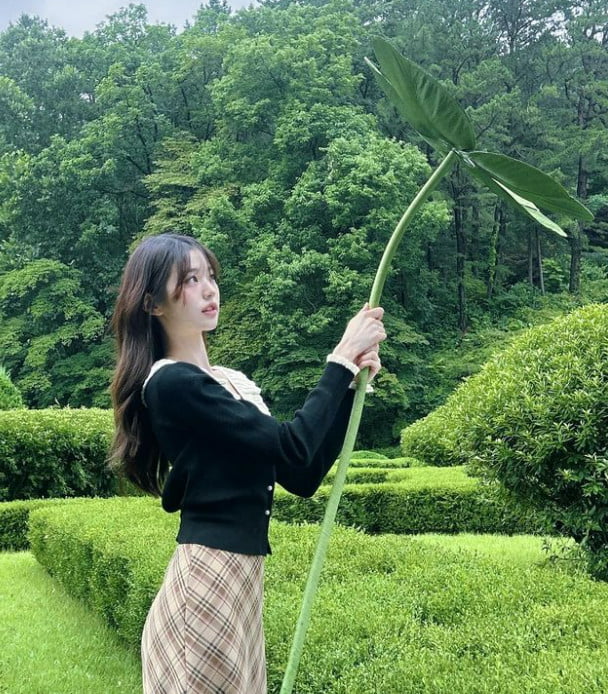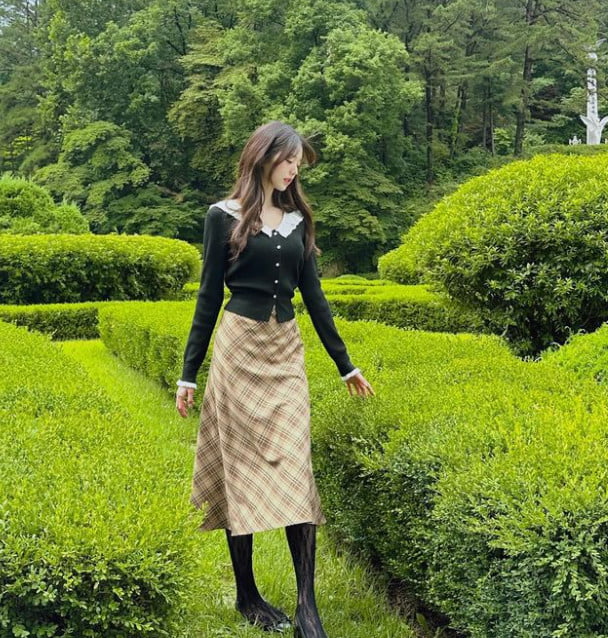 공개된 사진들 속에서 장원영은 체크무늬 롱 스커트에 화이트 셔링이 들어간 블랙 카디건을 착용한 채 화보 장인답게 다양한 포즈와 표정을 취하고 있다.