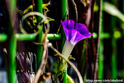 나팔꽃은 덩굴식물인데 철조망을 따라 계속 올라갑니다.