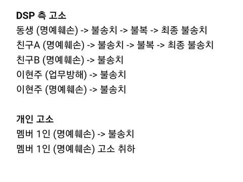 애초에 법률상 동일인에게 동일한 내용에 대해서는 한번만 고소가 가능함. 일사부재리의 원칙 몰라? 아니 상식적으로 유죄 뜰때까지 고소하기 이딴게 될리가 있어? 소속사에서 동생 포함 주변인을 고소했고 멤버 개인으로 1명이 고소함. 동생이 고소당한건 1번인데 그걸 ‘현주측’이라며 현주랑 친구들이 고소당한것까지 묶어서 말하니 동생이 7번 고송당했다고 오해한거임. 또한 패소가 아니라 불송치임. 재판까지 가지를 못한거임. 왜 재판까지 못 갔냐 따질까봐 쓰는데 불송치가 에이프릴 잘못을 인정하는거냐? 아님. 불송치 이유는 불송치문에 적혀있는데 1)인간관계에서의 마찰로 볼 수 있지만 왕따인지 판단하기는 어려움. 2)현주측에서 주장하는 매니저-채원 열애설은 거짓임 이게 다임. 적혀있듯이 왕따인지 아닌지 판단이 불가하고 판단할 증거가 없어서 불송치 뜬게 맞음. 그리고 자주 말하는 ‘따돌림이 명백한 사실임을 볼 때’ ←이건 최종 불송치문이 아니라 1차에서 나온 말임. ㄹㅇ로 왕따였으면 최종 불송치문에 왕따는 사실로 보여졌다고 써있었겠지