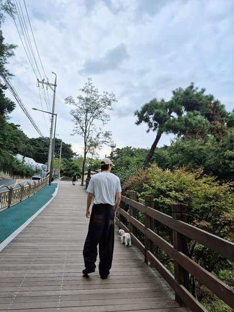 겨울이(=성찬 반려견)이랑 산책 간 사진 보내줌