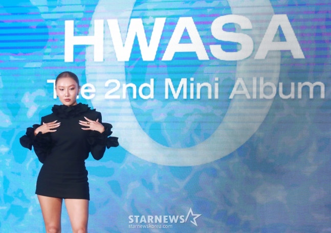 가수 화사가 19일 오후 서울 여의도 콘래드호텔에서 진행된 두 번째 미니앨범 ‘O'(오) 발매기념 기자간담회에서 포즈를 취하고 있다. 이번 앨범에는, 타이틀 곡 ‘NA’를 비롯해 ‘Road'(로드), ‘HWASA'(화사), ‘EGO'(이고), ‘OK NEXT'(오케이 넥스트), ‘just want to have some fun'(저스트 원트 투 해브 썸 펀), ‘O’ 등 7곡이 수록됐다. /2024.09.19 /사진=이동훈화사의 두 번째 미니앨범 '오'는 19일 오후 6시 각종 온라인 음원 사이트를 통해 발매된다.