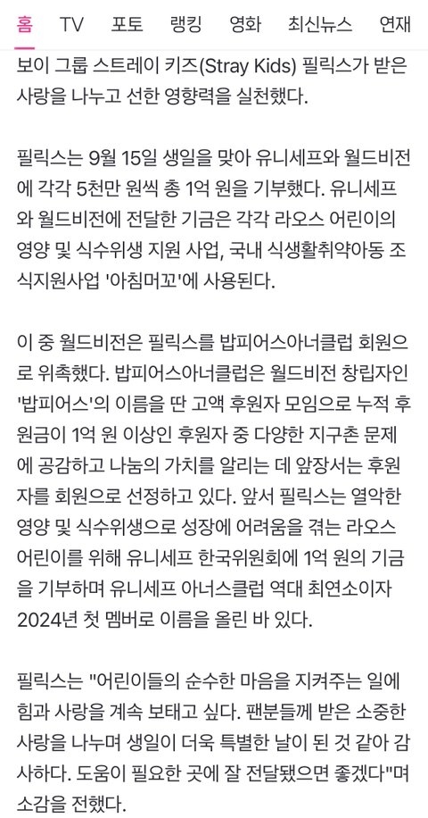 스키즈 멤버들 기부 기사 뜰 때마다