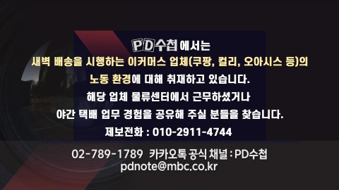 PD수첩에서는 새벽 배송을 시행하는 이커머스 업체(쿠팡, 컬리, 오아시스 등)의 노동 환경에 대해 취재하고 있습니다. 해당 업체 물류센터에서 근무하셨거나 야간 택배 업무 경험을 공유해주실 분들을 찾습니다.