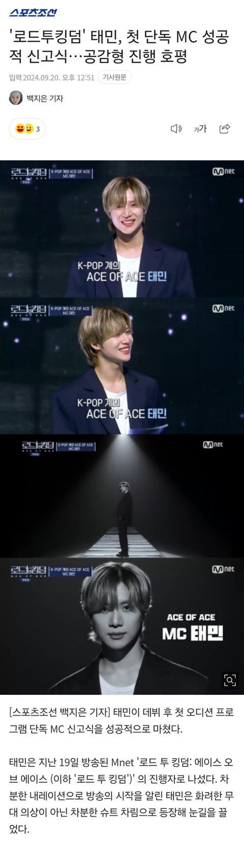 태민은 계속해서 매주 목요일 '로드 투 킹덤'의 MC로서 활약을 펼칠 예정이다.