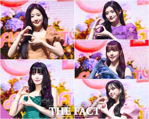 그룹 피프티 피프티(FIFTY FIFTY)의 예원과 아테나, 하나, 문샤넬, 키나(왼쪽 위부터 시계 방향으로)가 20일 오후 서울 광진구 예스24라이브홀에서 열린 두 번째 미니 앨범 '러브 튠(Love Tune)' 발매 기념 쇼케이스에서 포즈를 취하고 있다.