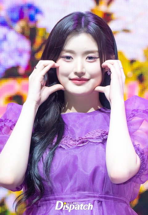 아테나는 퍼플 원피스로 화사한 비주얼을 뽐냈다.