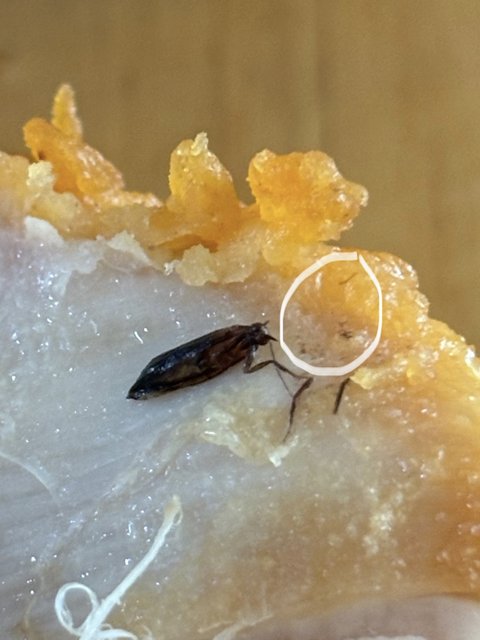 저 벌레의 몸과 다리는 치킨을 뒤집어 흔들어도 떨어지지 않을만큼 고정되어 있었습니다.