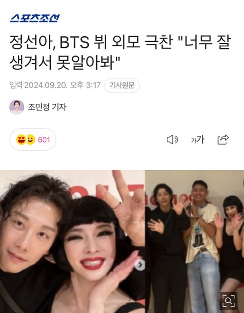 얼마전에 뷔랑 박효신님이랑 뮤지컬배우 정선아님 시카고 공연보러 갔는데 뷔 실물보고 잘생겨서 놀랬다고 하심 나도 뷔 실물 보고싶다고오 언제쯤 볼수있니…