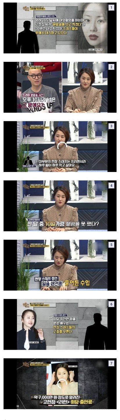 혼자 따뜻한 방에서 리턴 드라마를 꼭 본방으로 보겠다고 강화도 밤바다에 밤 10시에 스텝들 다 세워놓고 기다리게 했고 그날밤 영하 18도에 바람 미친듯이 불었대 그리고 대본도 안외우고 걸핏하면 지각해서 촬영 아예 못하는날도 있어서 일당 받는 스텝들은 굶었대