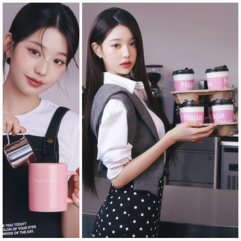공개된 사진 속 장원영은 카페 또는 커피숍으로 보이는 공간에서 커피를 서빙하는 장면을 연출하고 있다.