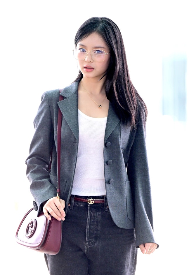 김성현 기자 : 스마트하면서도 이지적인 매력과 귀여움이 동시에 공존하는 룩을 선보인 뉴진스 하니가 이번 주 패션 베스트에 올랐다. 블랙진에 화이트 티셔츠, 클래식하면서도 실패가 없는 코디에 세련된 그레이 자켓으로 멋을 더했다. 포인트가 되는 G사의 벨트와 가방까지 그리고 안경까지 흠잡을 곳이 없다.