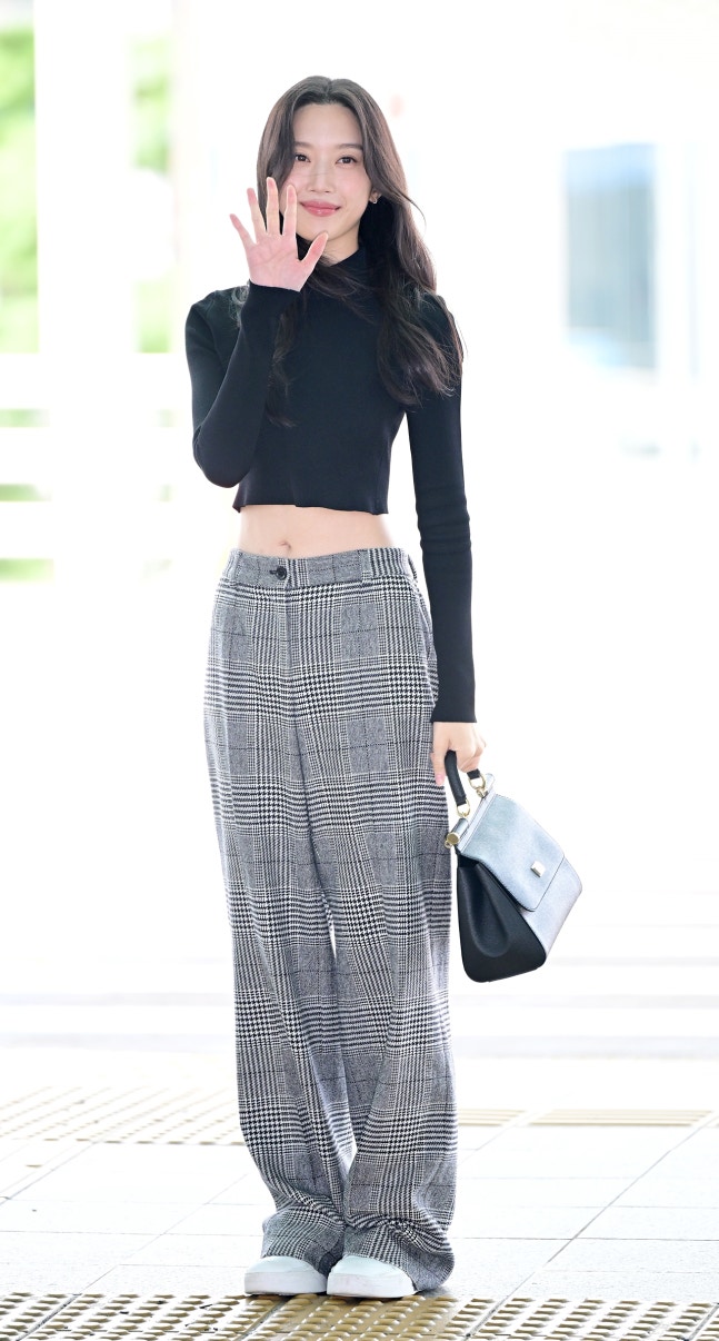 최보란 기자 : 잘록한 허리와 긴 팔다리를 지닌 문가영의 몸매가 더욱 돋보이는 패션. 상하의의 컬러부터 핏까지 잘 조화시켰다. 미디엄 토트백을 택해 캐주얼하면서도 포멀한 스타일링을 완성했다.