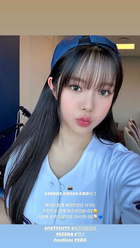 키나는 3일 인스타그램 스토리를 통해 "레시와 함께 예정이었던 시구는 우천으로 인해 취소됐습니다. 다음에 승리 요정으로 다시 만나요"라며 여러 장의 사진을 게재했다.