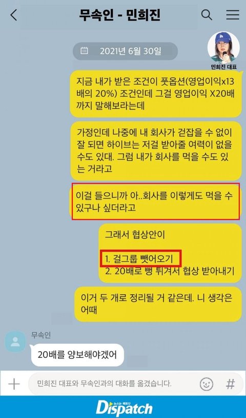 문제는 무당이 뉴진스를 먹든 20배를 먹는 둘 중 하나를 택해야 되고