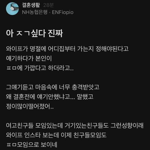 친정집은 내집이니까 자주가는건 당연한거고 시댁은 생판남의집인데 왜가냐 부모도아닌주제에 남의집딸한테 바라는게 뭐리이많아 너가 뭐라..