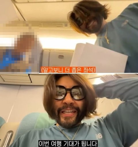 노홍철이 f1을 관람하기 위해 밀라노로 가는 비행기에 탑승했다.