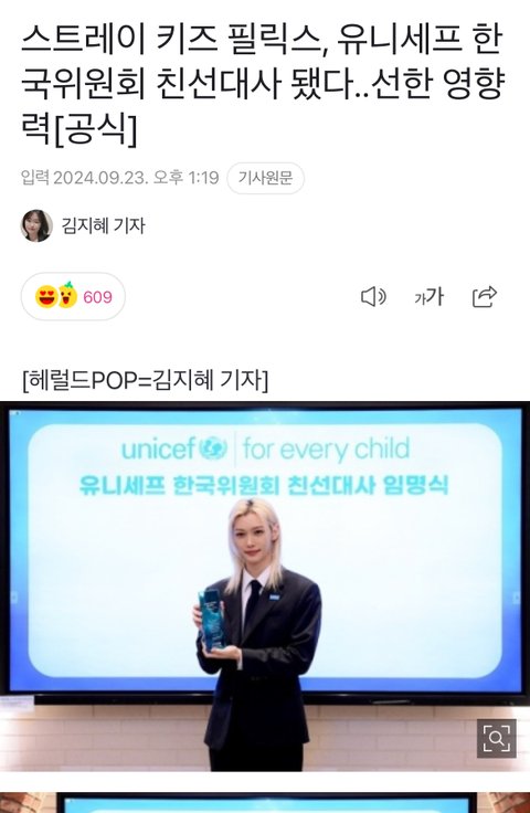 용복이 유니세프 한국위원회 친선대사 !!