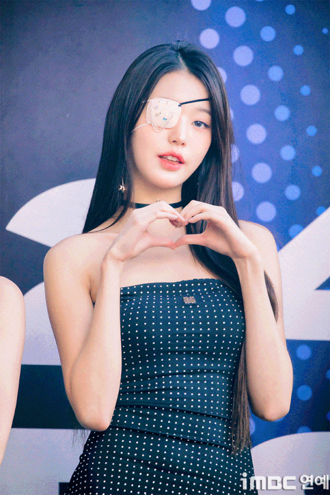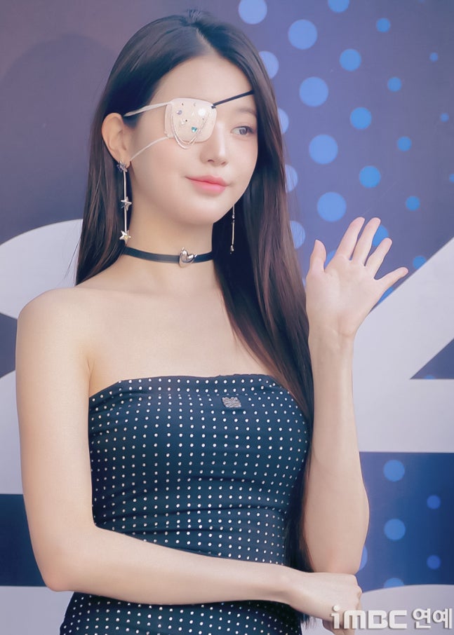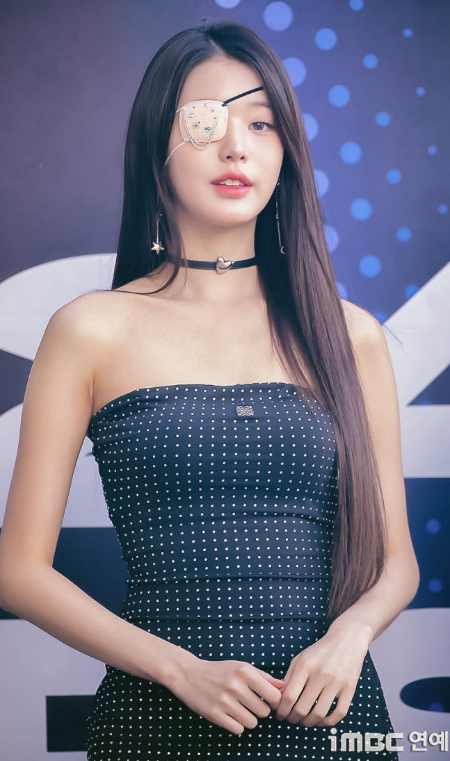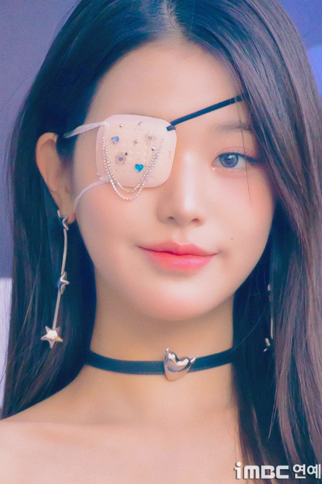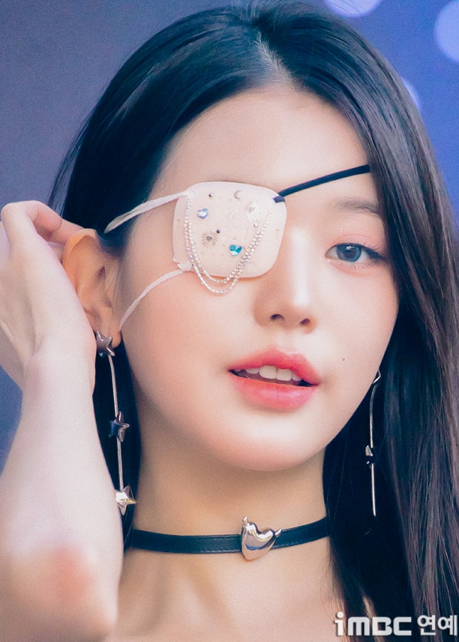 장원영이 한쪽 눈을 가린 안대를 착용 하고도 압도적 미모를 과시했다.
