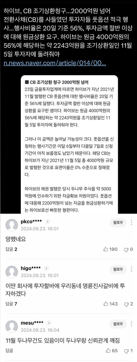 세븐틴 데려가기 위해 플디를 먹은거지 하이브가ㅠㅠ 더이브즈가 뭐 세븐틴급이라도 된다고 착각하는건가? 하이브가 뭐가 아쉽다고 더보이즈를 데려감; 난 하이브 ㅈㄴ 혐오하지만 저 사진은 ㅈㄴ 웃기네ㅋㅋㅋㅋㅋ