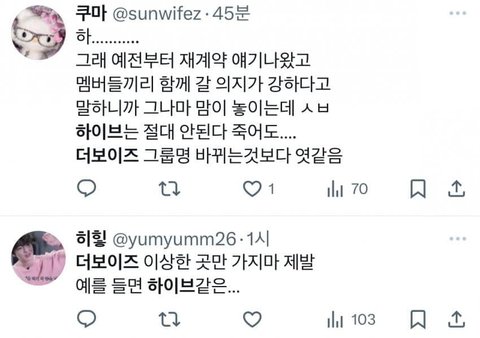 타팬인데 굳이 서치까지 하면서 캡 따온게 너무 짜침 ㅠ 너랑 더보이즈가 뭔 상관인데 혼자 그러는거임 판에서 추천 조작하면서 아이돌 까는 애들 맨날 이럴거 생각하니까 맘이 편해짐 참 애잔하노..그 시간에 자기개발이나 좀 하길