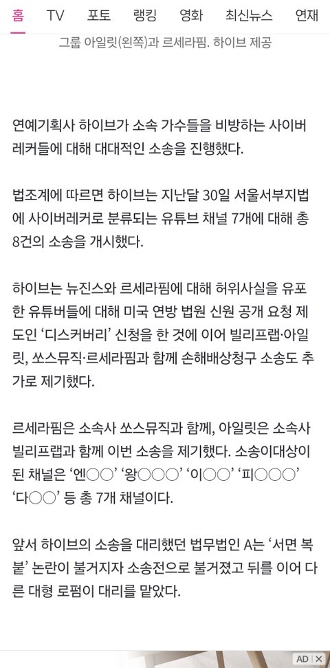 사람들 요즘 뭐하나 건수잡히면 죽어라패면서 스트레스푸는데 난 아이돌패는것보다 아이돌패다가 잡혀가서 인실ㅈ 당하는 애들보는게 더 재밌음 탈수 인생망한거보니까 너무 재밌더라 그리고 하이브 저거뜨고나서 역바하던 숏츠렉카들 영상지우고 채널지우고 튀고있다며 ㅋㅋ 다 잡혀서 인생망했으면~