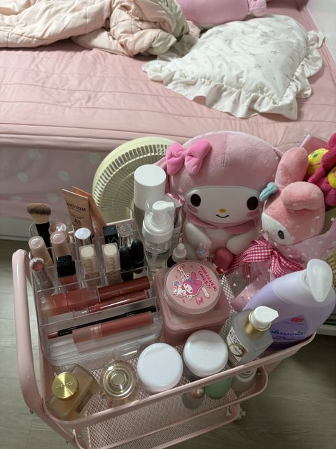 뭐든 안보이게 넣고 쓸때만 꺼내는게 최곤데..... 쓰니가 정리한건 아기자기 귀여운데 청소를 자주 해줘야되는 단점이 있어. 저~기 립스틱 정리하는 칸칸마다 먼지 끼임에 화장품위에도 먼지.. 부지런 해야해. ㅠ ㅠ