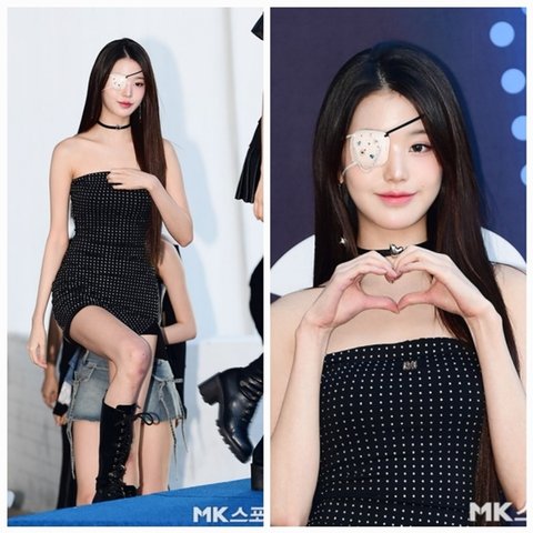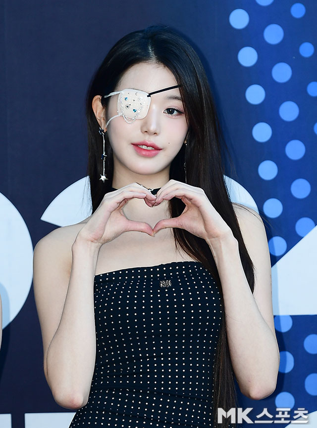 장원영이 안대를 끼고 부상중에도 카리스마로 소화한 깜짝 패션을 선보였다. / 사진 = 김영구 기자