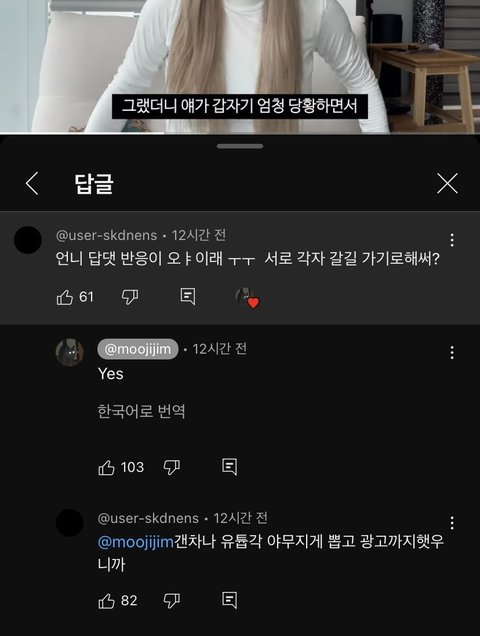 답글이 애매모호함 .. 아직 전 영상은 그대로던데