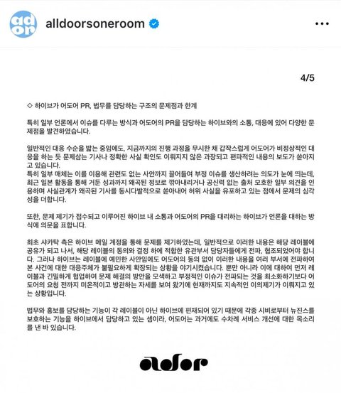 민희진 대표가 해임되기 전에 어도어에서 썼던 입장문인데