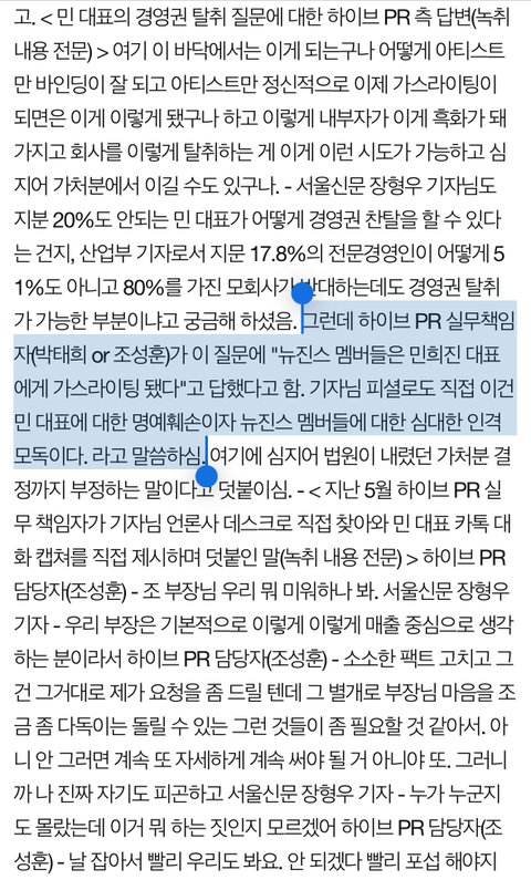 뉴진스에 대해 이렇게 말한거랑 기자 포섭하겠다는 내용은 쏙 빼버리기~ ㅋㅋ