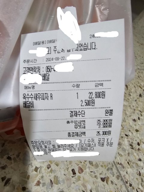 그런데 25일 수요일 오늘 출근할때 보니 배달업체에서 영수증만 떼어 갔네요...