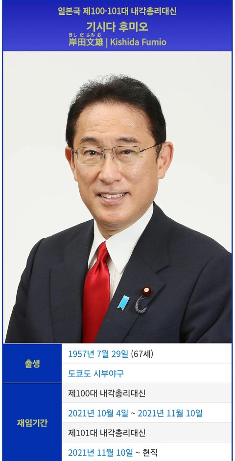 (사진2~3 설명) 기시다 후미오(岸きし田だ文ふみ雄お, Kishida Fumio) 일본 총리 <출처 : NAVER 나무위키>