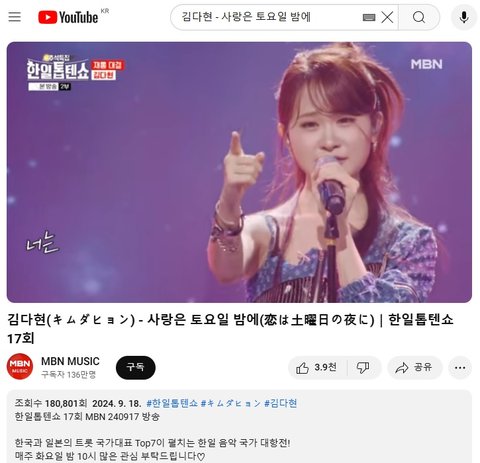 (사진4 설명) 김다현(キムダヒョン) - 사랑은 토요일 밤에(恋は土曜日の夜に)|한일톱텐쇼 17회