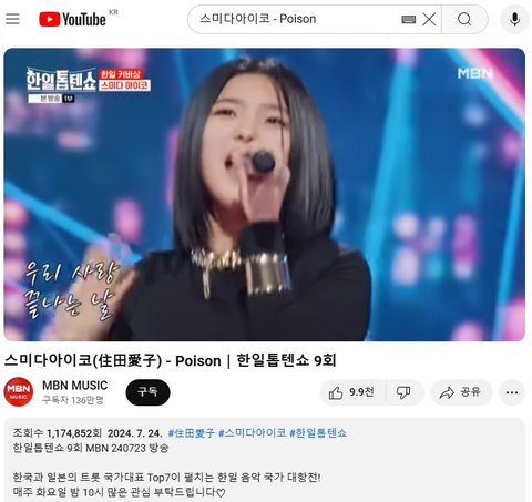 (사진5 설명) 스미다아이코(住田愛子) - Poison|한일톱텐쇼 9회