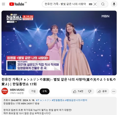 (사진6 설명) 전유진 가족(チョンユジンの家族) - 별빛 같은 나의 사랑아(星の光のような私の愛よ)|한일톱텐쇼 17회