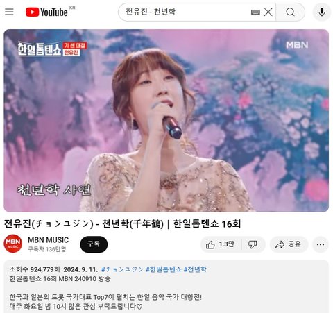 (사진7 설명) 전유진(チョンユジン) - 천년학(千年鶴)|한일톱텐쇼 16회