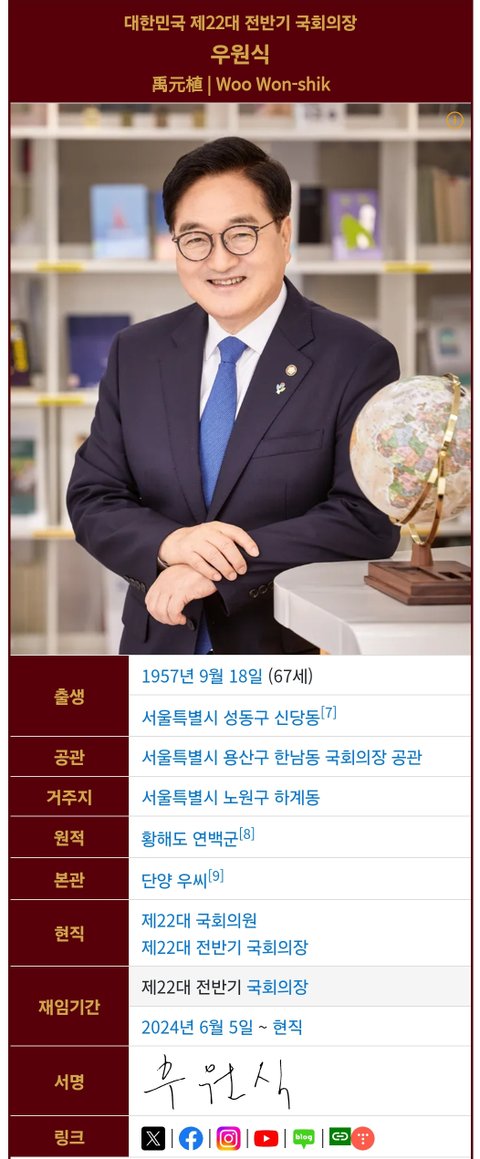 (사진8 설명) 우원식(禹元植, Woo Won-shik) 국회의장 <출처 : 네이버 나무위키>