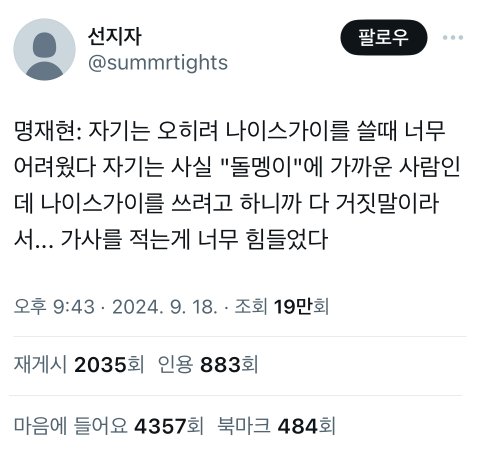 뭔가 인생의 모진 풍파를 10대 후반~갓 스물 즈음에 다 겪고 지금의 우리가 아는 신기한 명재현이 탄생한 것 같음