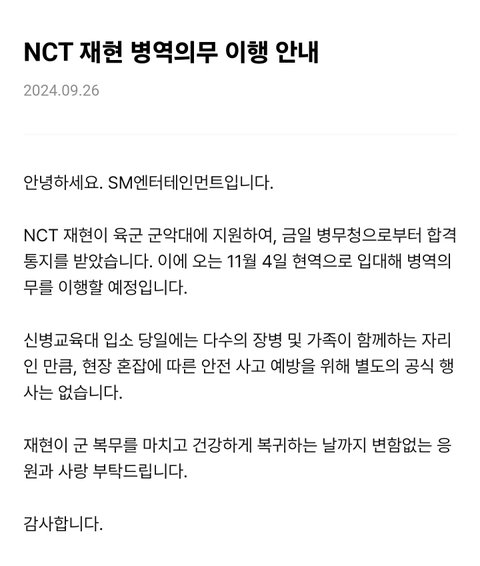 엔시티 재현 군대간대