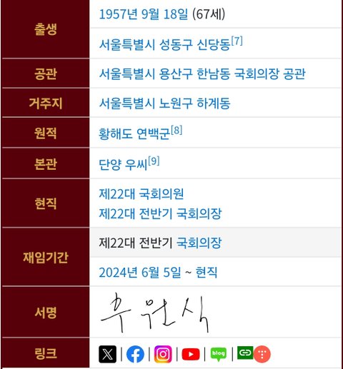 (사진1~2 설명) 우원식(禹元植, Woo Won-shik) 국회의장 <출처 : 네이버 나무위키>