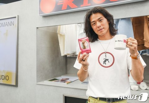 래퍼 빈지노가 지난해 8월 24일 오전 서울 영등포구 더현대 서울에 위치한 새 앨범 발매 기념 팝업스토어 '디 반 비비(Die Bahn BB)'에서 제품을 소개하고 있다. 이번 팝업스토어에서는 모자·티셔츠·가방·폰케이스·키링 등 한정판 굿즈와 판매가 종료된 한정판 앨범 등을 판매한다. (현대백화점 제공) 2023.8.24/뉴스1