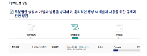 안녕하세요! 현재 생성 AI의 악용 방지와 윤리적인 사용을 촉구하는 국민청원이 진행중이에요
