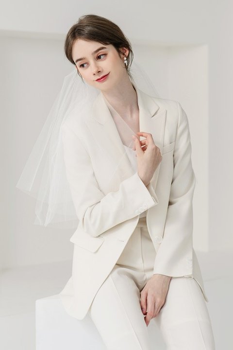 근데 그 드레스샵에 신기하게도 신부용 웨딩슈트가 있더라구요. 제가 막 공주공주 이런거 어렸을때부터 별로 안좋아하기도 했고 운동을 넘 열심히 해서 몸 근육이 두두러져 드레스 라인이 그렇게 이쁜것도 아닙니다. 그래서 그런지 그 편안해보이면서도 깔끔하고 이쁜 웨딩슈트가 넘 맘에 드는겁니다.