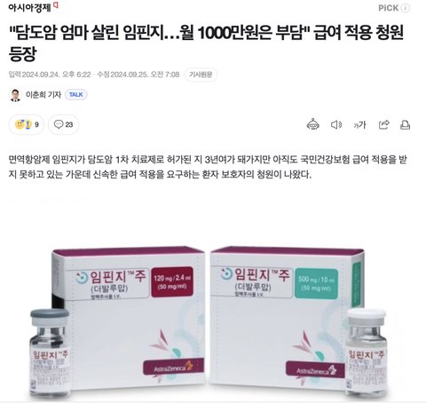 국내 연구진 주도 연구에서 특히 긍정적인 효과를 보인 임핀지가 우리나라에서 급여화되지 않은 점이 많이 안타깝고 아쉽습니다ㅠㅠ